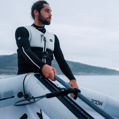 This rigid spreaderbar prevents rib compression while ensuring comfort and freedom of movement. It allows for better torso rotation during turns, transitions, and pumping the foil. The minimal overlap keeps both the vest and harness in place while naturally following your wing’s pull and stance—all in all, extending your sessions.